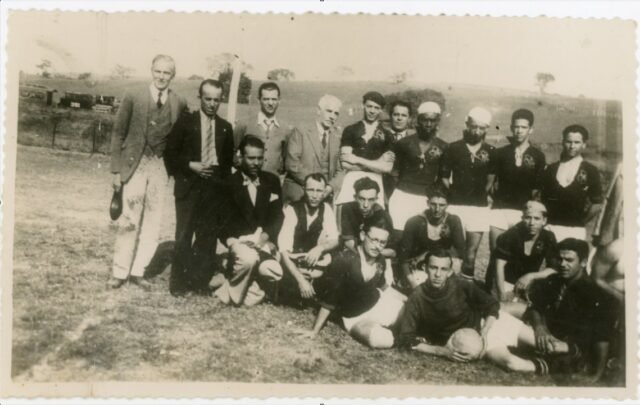 Atletas e fundadores do E.C. Mogiana posam para retrato nos primórdios de sua existência. Jaguariúna, 1933.