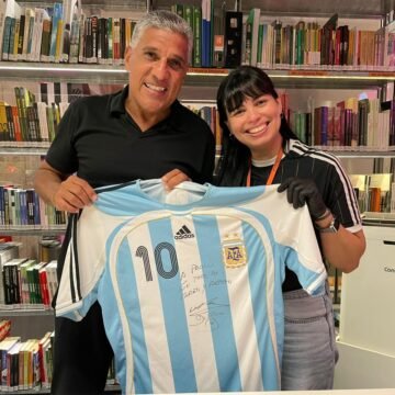 Mas e a camisa exposta no Museu do Futebol? Para entendermos sua origem ou procedência, é necessário um salto para os anos 2000. Em 2006, o empresário Francisco “Todé” Monteiro desenvolveu um projeto de popularização do showbol na América do Sul, organizando jogos com grandes ídolos do futebol aposentados. O principal nome contratado foi Maradona, que virou praticamente dono da Seleção Argentina da modalidade. Dois anos depois, o craque estava disputando um torneio na Espanha e enfrentou a Seleção Brasileira de showbol, que contava com Silas entre os jogadores, já aposentado dos gramados e iniciando a carreira de treinador, mas ainda disposto a bater uma bola. Logo após o jogo, Diego entregou a referida camisa 10 autografada para o amigo. Detalhe curioso, trata-se de uma camisa da Seleção Argentina de futebol, não específica de showbol.
