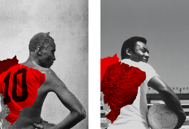 Assim sendo, na colagem de Mulambö, euforia e violência coexistem no mesmo espaço, deslocando os sentidos iniciais das fotografias que a compõem. Na captura protagonizada por Pelé, então com 17 anos, o choro eufórico do atleta é ressignificado em um pranto de dor pelo golpe que lhe é infligido. Paralelamente, a agressão policial é redirecionada. No lugar dos estudantes da imagem primária, o artista insere a figura do “Rei do Futebol”, tensionando os limites entre a celebração no gramado e a brutalidade extracampo.