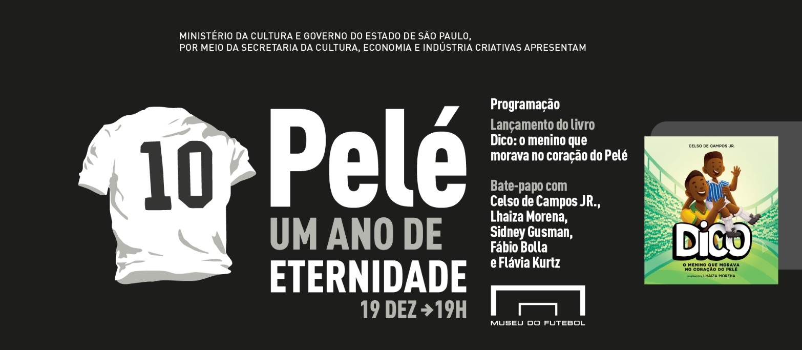Como parte dos eventos de homenagem a Pelé no aniversário de um ano de sua morte, o Museu do Futebol recebe nesta terça-feira (19/12) o lançamento do livro infanto-juvenil “Dico: o menino que morava no coração do Pelé”, com texto de Celso de Campos Jr. e ilustrações de Lhaiza Morena. O lançamento é gratuito e inclui um bate-papo no auditório do Museu com a presença dos autores, além de Flávia Arantes do Nascimento, filha de Pelé e apresentadora do podcast “Legado do Rei” ao lado de Fabio Bolla. Os participantes vão conversar sobre os valores que Edson Arantes do Nascimento sempre transmitiu fora dos campos.